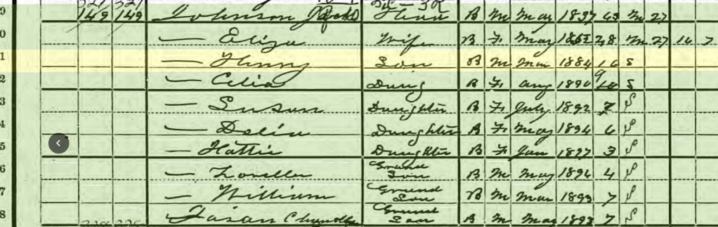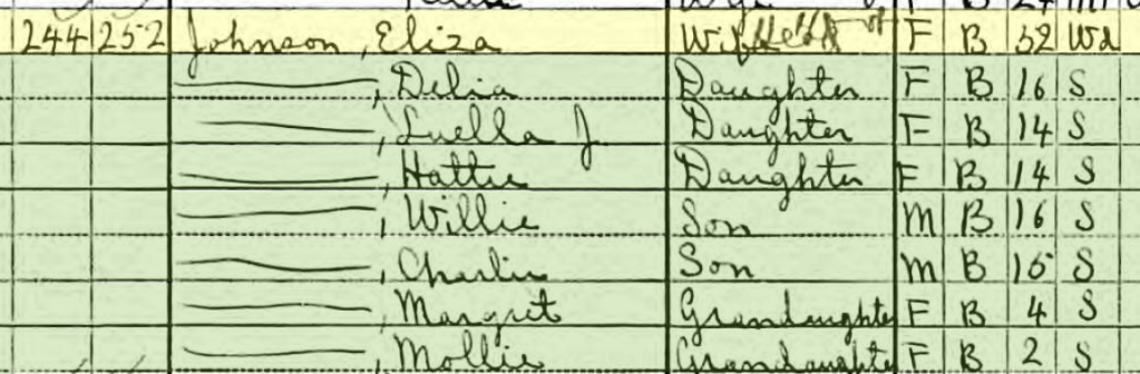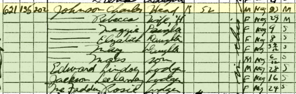 But I couldn’t find him on the 1900 Census. Here you see Jack and Eliza Johnson’s household.