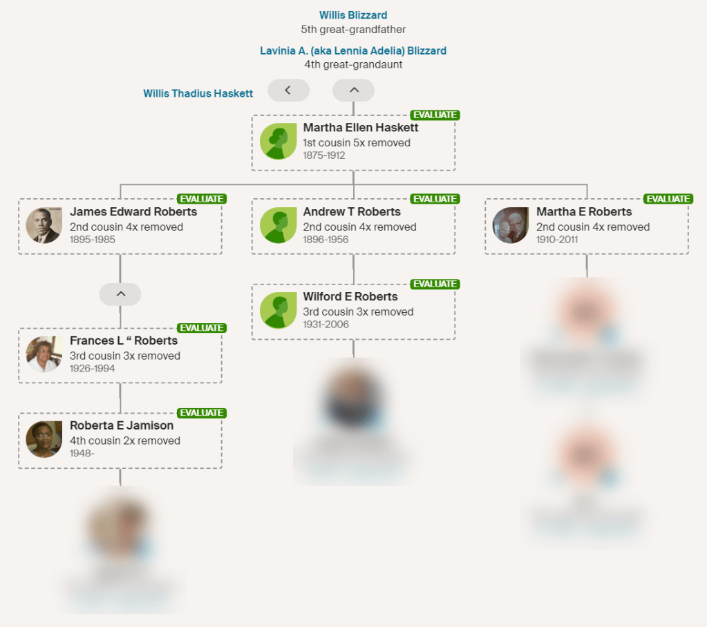 For the first time, I clicked on my fifth great-grandfather Willis Blizzard, father of my fourth great-grandmother Martha Blizzard (Cypress) and found some Blizzard ancestors that are my matches. This looks promising. I would have never found this without Martha Blizzard’s surname.